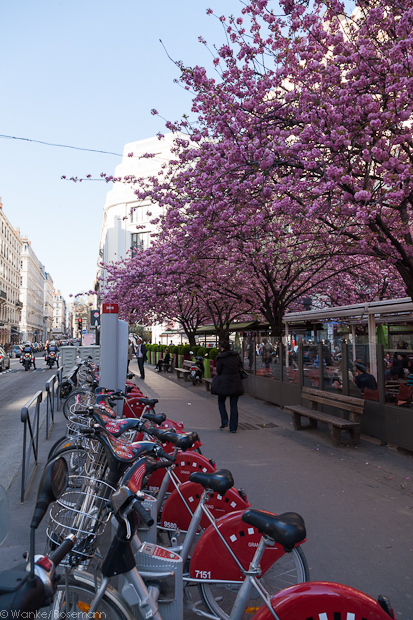 Vélo'V-Station mit Kirschblüten